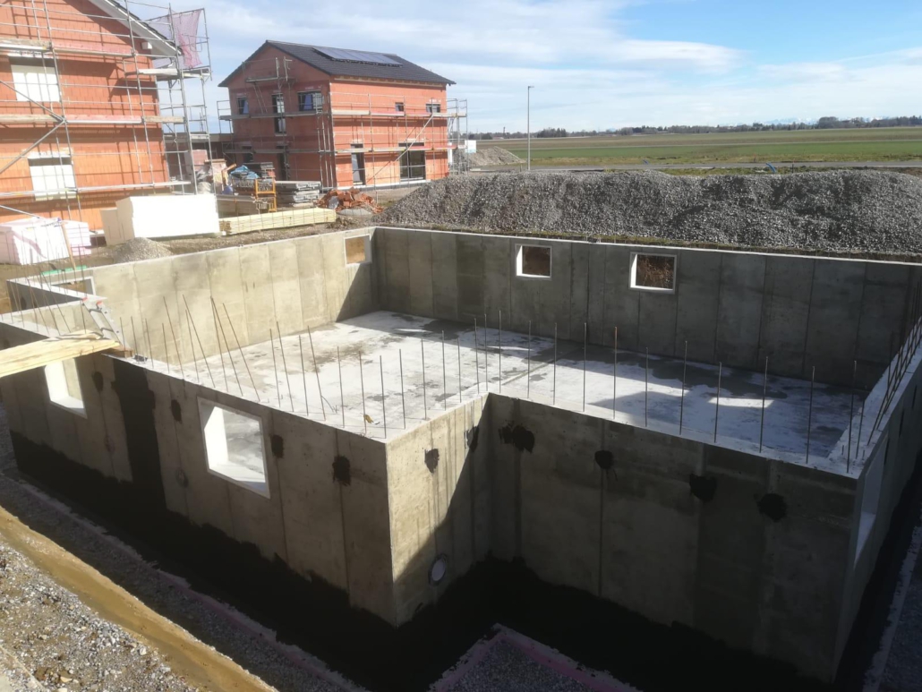 Zusätzlich bekommen Sie von uns bei der Ausführung einen wasserdichten Keller aus sog. WU-Beton, damit Sie für die nächsten Jahre eine absolute Sicherheit haben.