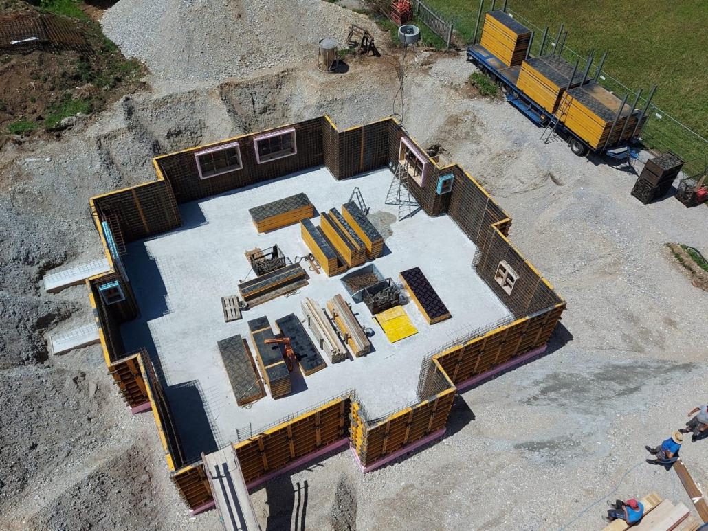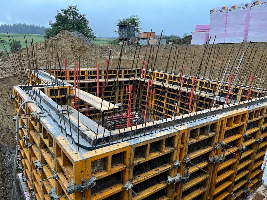 Wir arbeiten mit unserer eigenen PERI TRIO Aluschalung, die von geschulten Schalungsspezialisten betreut wird. Dazu verwenden wir für Dämmung/Innenmauerwerk/Blitzschutz/Kellerfenster/ Lichtschächte/etc. ausschließlich hochwertige Materialien, die wir von langjährigen Partnerfirmen erhalten.